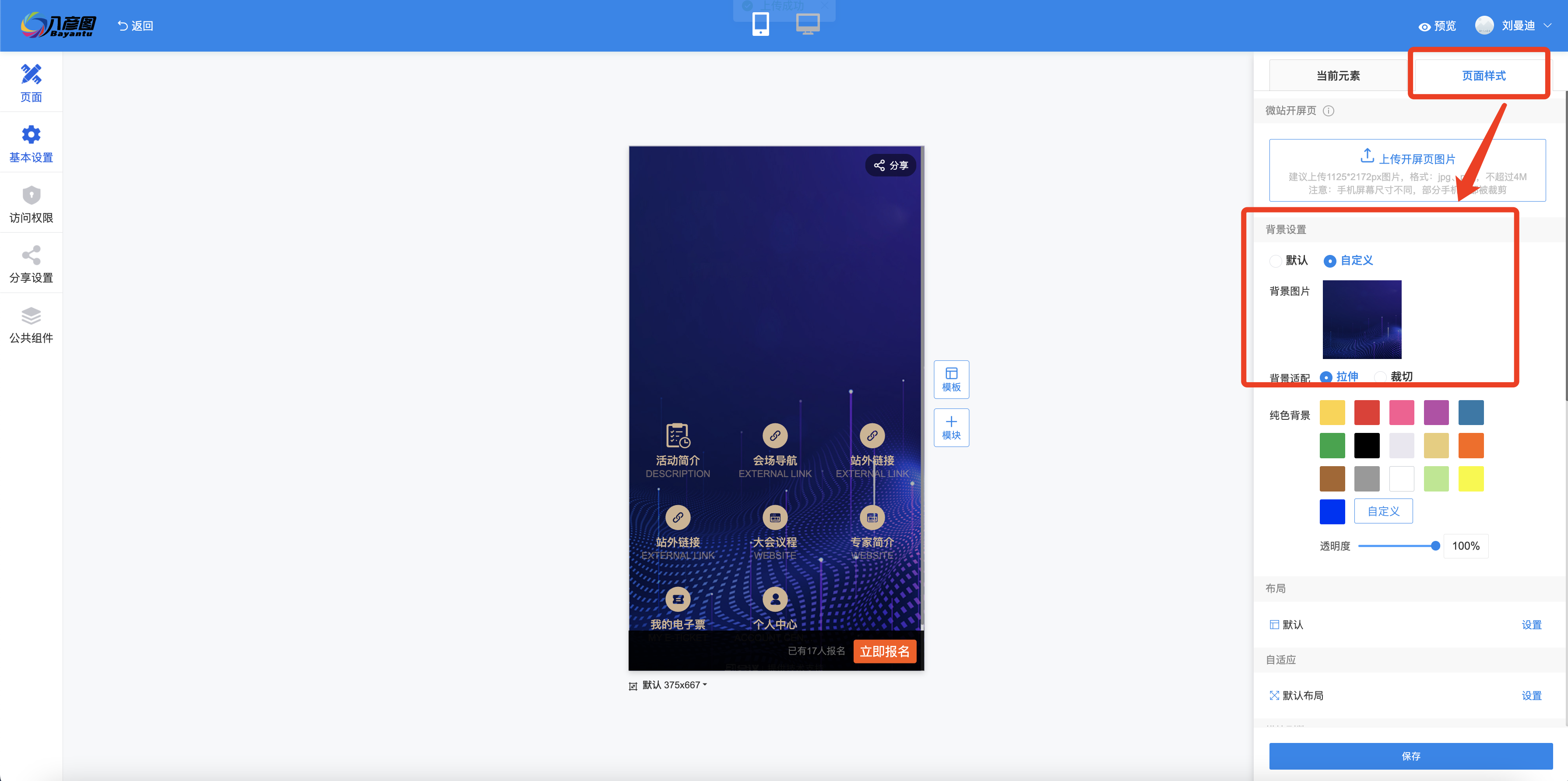 步骤三:上传带有会议信息的Banner图